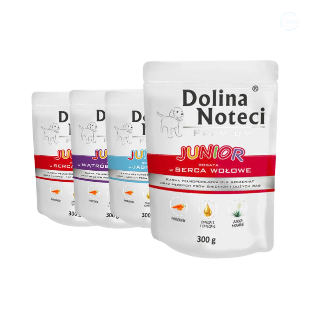 Dolina Noteci Premium JUNIOR MIX to karma, która łączy naturalne składniki z zaawansowaną wiedzą o żywieniu psów. Każda saszetka to pełnowartościowy posiłek, który dba o zdrowie, witalność i rozwój Twojego pupila.