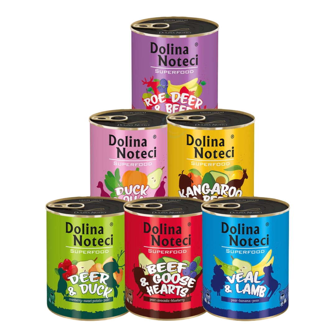 Zapewnij swojemu psu to, co najlepsze, z zestawem Dolina Noteci Superfood MIX – wyjątkowy smak i zdrowie w każdej puszce!