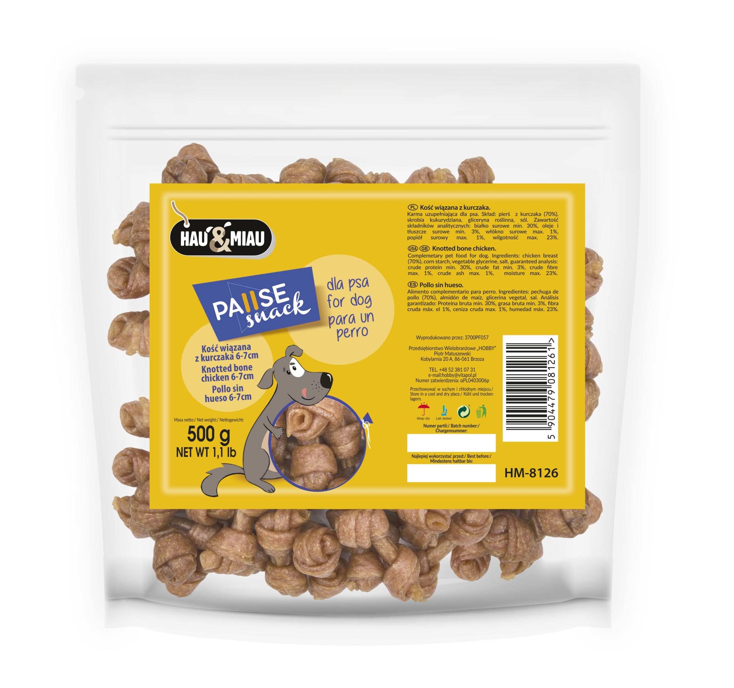 Pausesnack przysmak dla psa, kość wiązana z kurczaka 6-7cm 500g