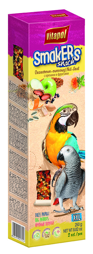 Smakers orzech-owoc to produkt stworzony z myślą o dużych papugach, które zasługują na najlepsze. Starannie dobrane składniki gwarantują: